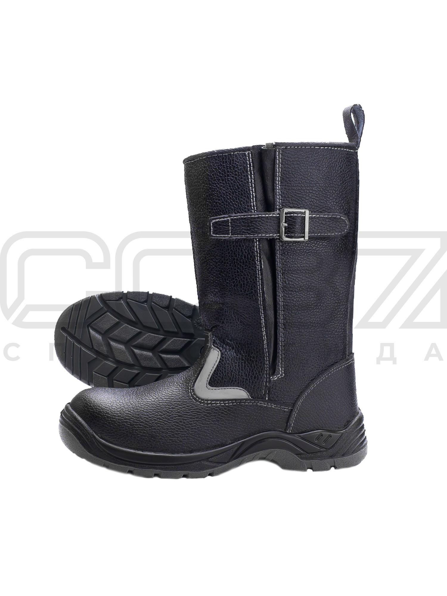 - Кожаный ремешок с пряжкой-застёжкой регулирует голенище по объёму и надёжно фиксирует сапог на ноге.