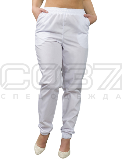 Брюки-джоггеры медицинские женские ИМ304(0) цв.белый тк.тиси в Омске