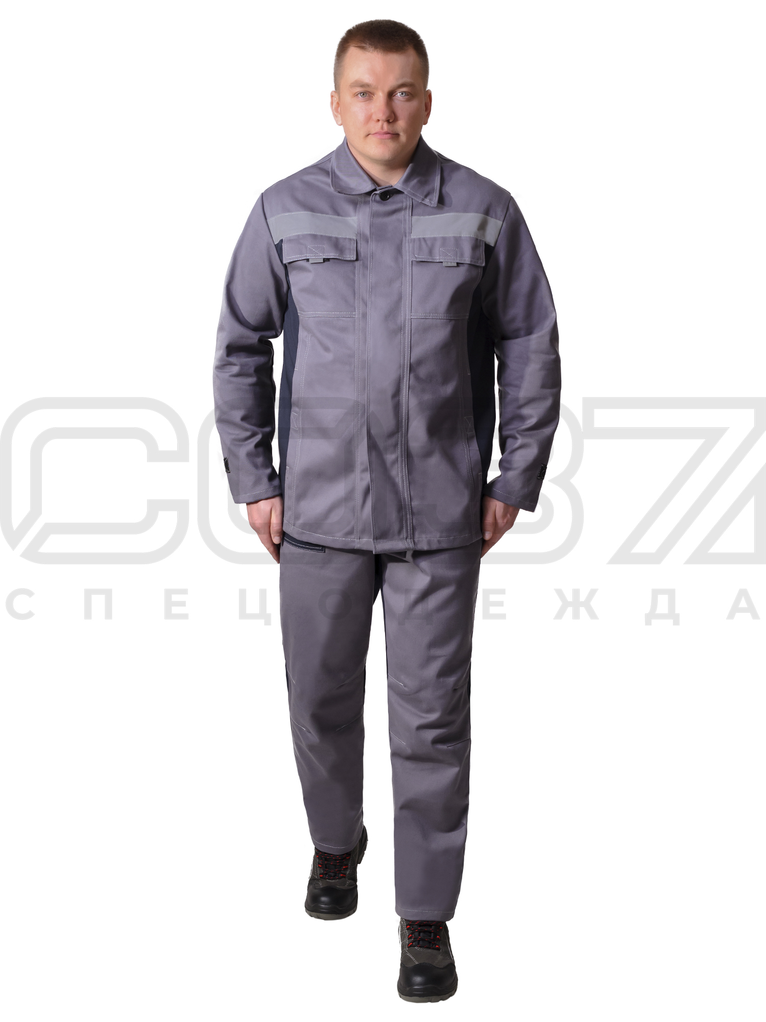 Костюм сварщика "Накал" с СОП 1 класс цв.серый/чёрный тк.саржа/джуос/аргос в Омске